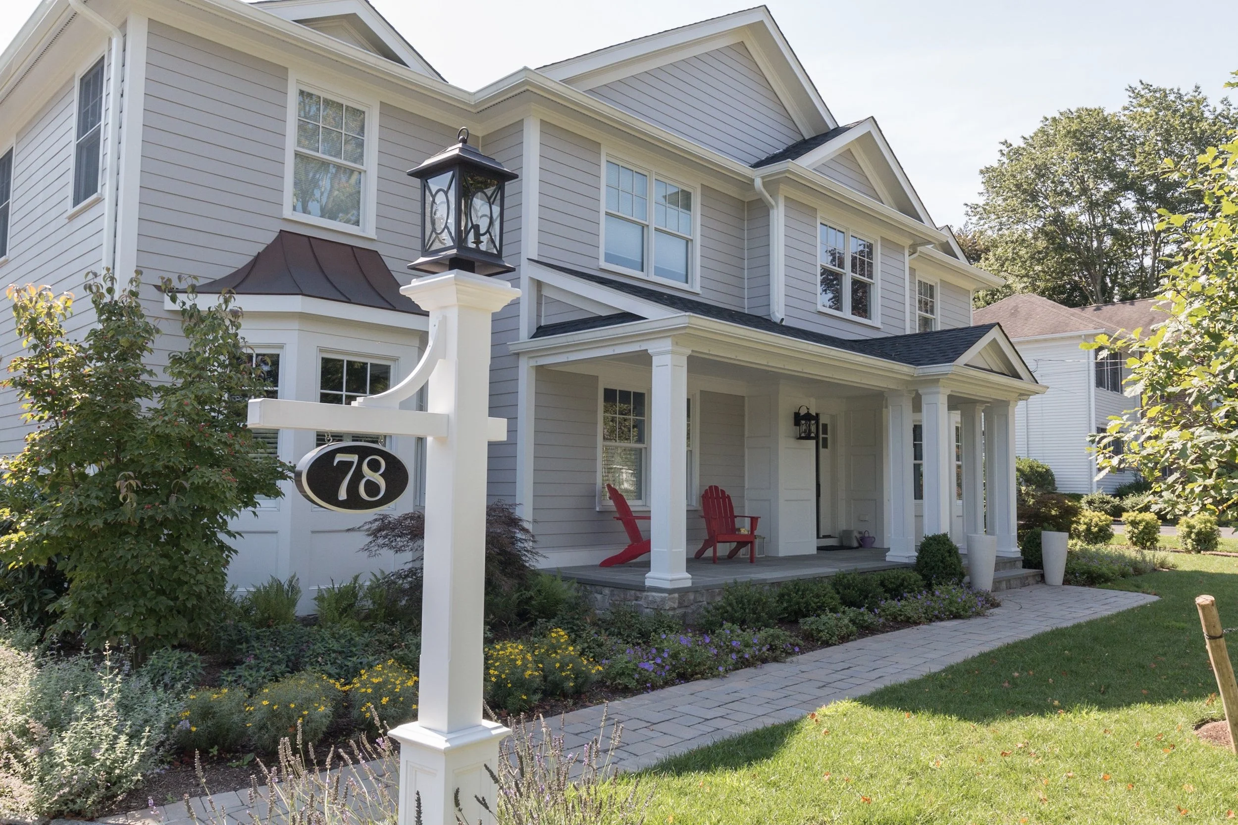 A Welcoming First Impression – A paver walkway and fresh plantings create an inviting front entry.